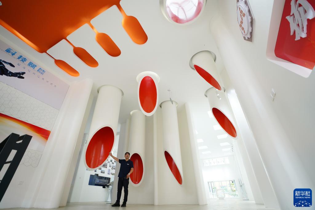 7月7日,在由原企業飼料車間改造成的牡丹江工業印象館,工作人員在介紹情況。新華社記者 王建威 攝