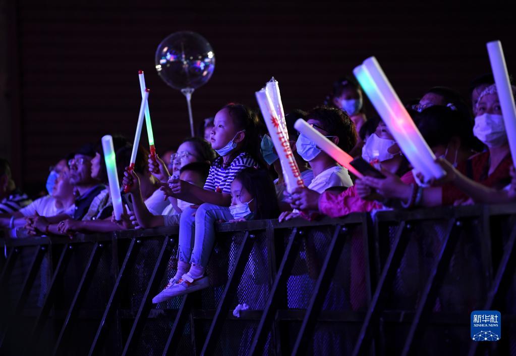 游客在大武口洗煤廠工業遺址公園觀看“工業之聲”音樂節演出(7月9日攝)。