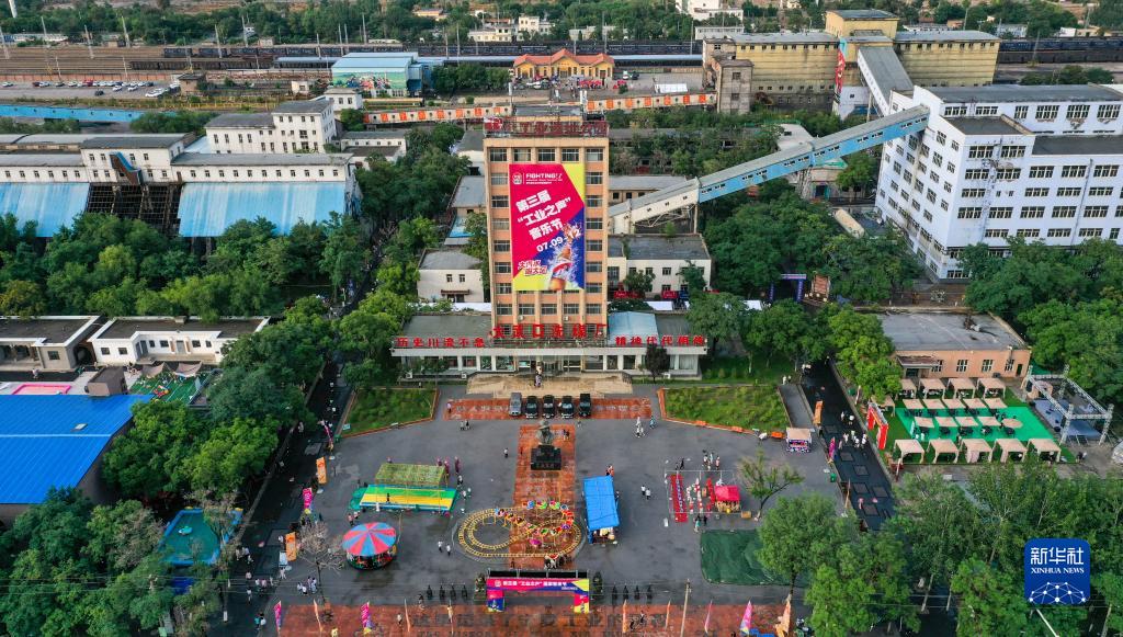 “工業之聲”音樂節在寧夏石嘴山市大武口洗煤廠工業遺址公園內舉行(7月9日攝,無人機照片)。