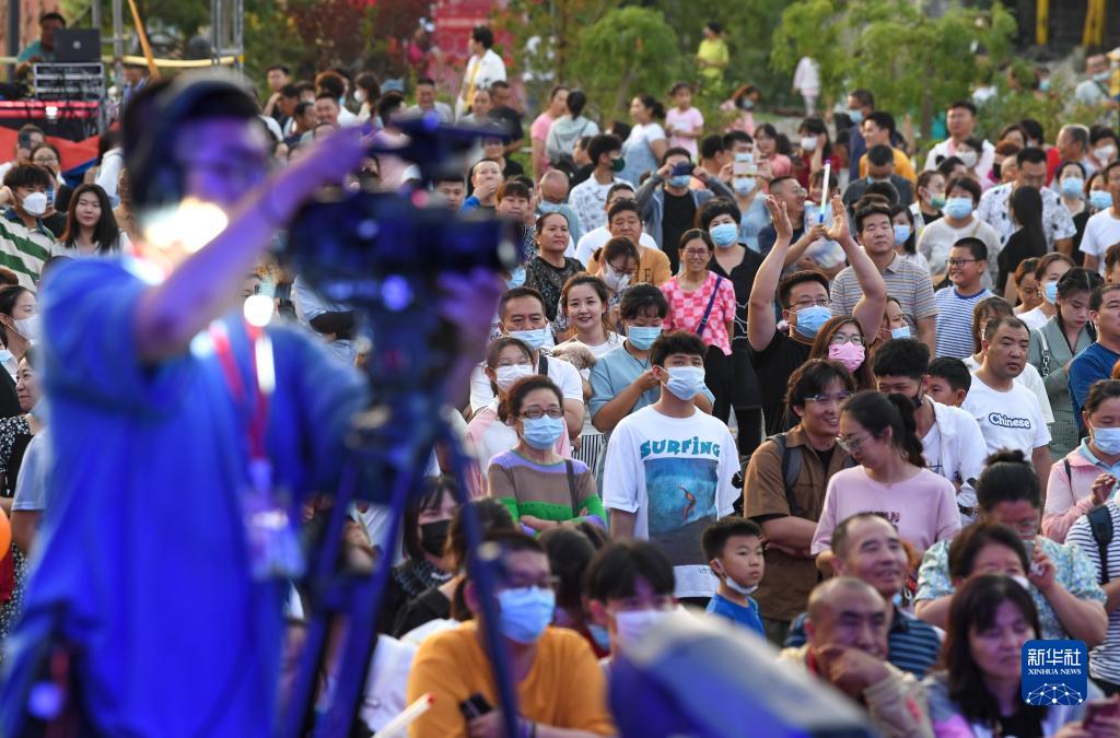 游客在大武口洗煤廠工業遺址公園觀看“工業之聲”音樂節演出(7月9日攝)。