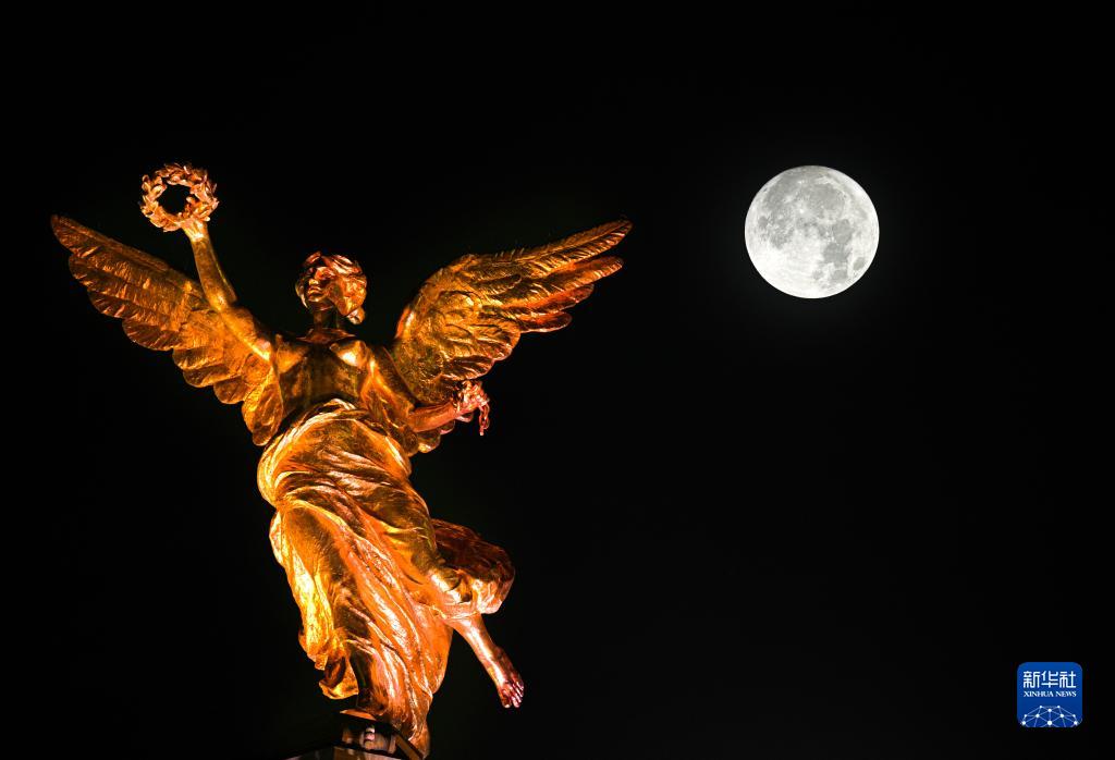 這是7月13日凌晨在墨西哥首都墨西哥城拍攝的“超級月亮”(二次曝光)。