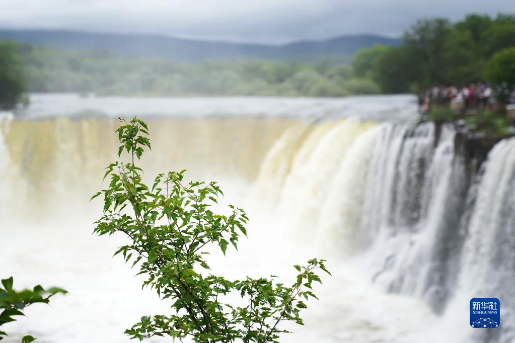 受上游來水量增多等因素影響,近日,位于黑龍江省牡丹江市的鏡泊湖世界地質公園水量持續增加,景區內的吊水樓瀑布出現“三面溢流”壯觀景象。
