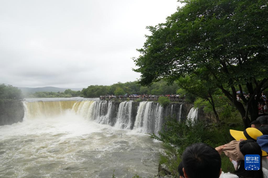 受上游來水量增多等因素影響,近日,位于黑龍江省牡丹江市的鏡泊湖世界地質公園水量持續增加,景區內的吊水樓瀑布出現“三面溢流”壯觀景象。