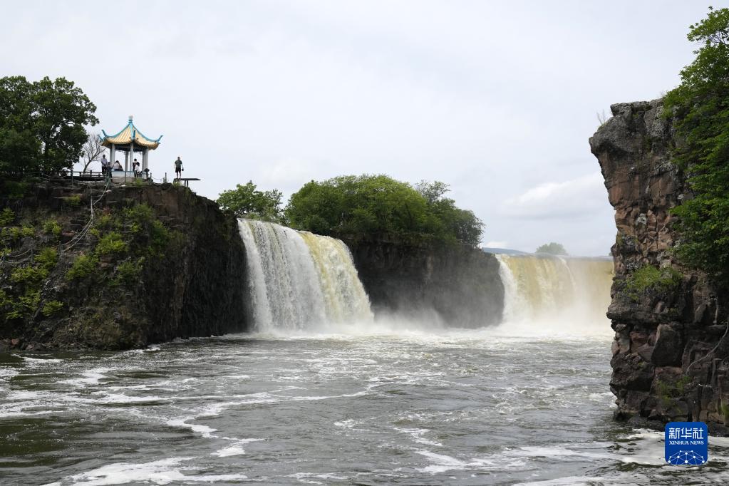 受上游來水量增多等因素影響,近日,位于黑龍江省牡丹江市的鏡泊湖世界地質公園水量持續增加,景區內的吊水樓瀑布出現“三面溢流”壯觀景象。