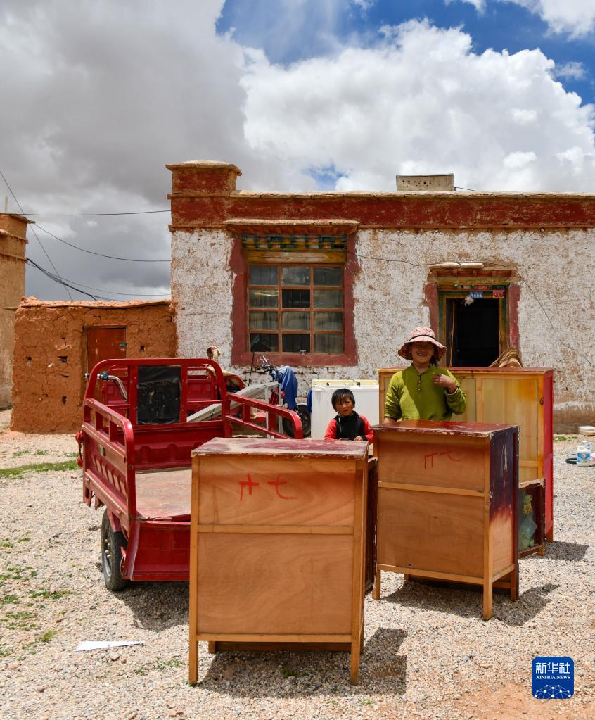 雙湖縣多瑪鄉果根擦曲村村民在搬運家具,準備搬遷(7月12日攝)。