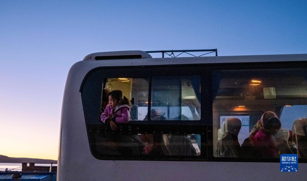搬遷群眾搭乘大巴,準備前往森布日安置點(7月19日攝)。