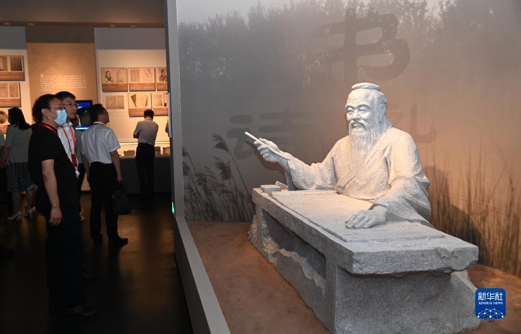 7月30日,觀眾在中國國家版本館西安分館參觀中華文化經典版本展(西部篇)。