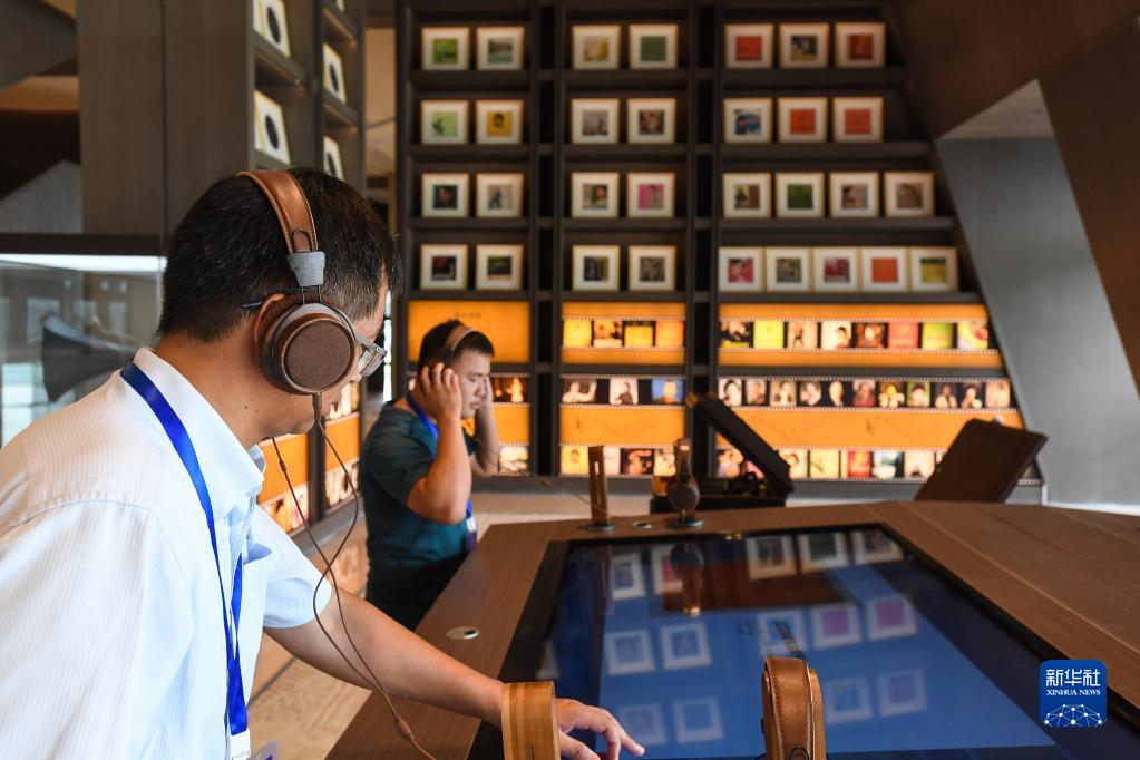 7月30日,參觀者在中國國家版本館廣州分館中國流行音樂版本展示區體驗試聽。