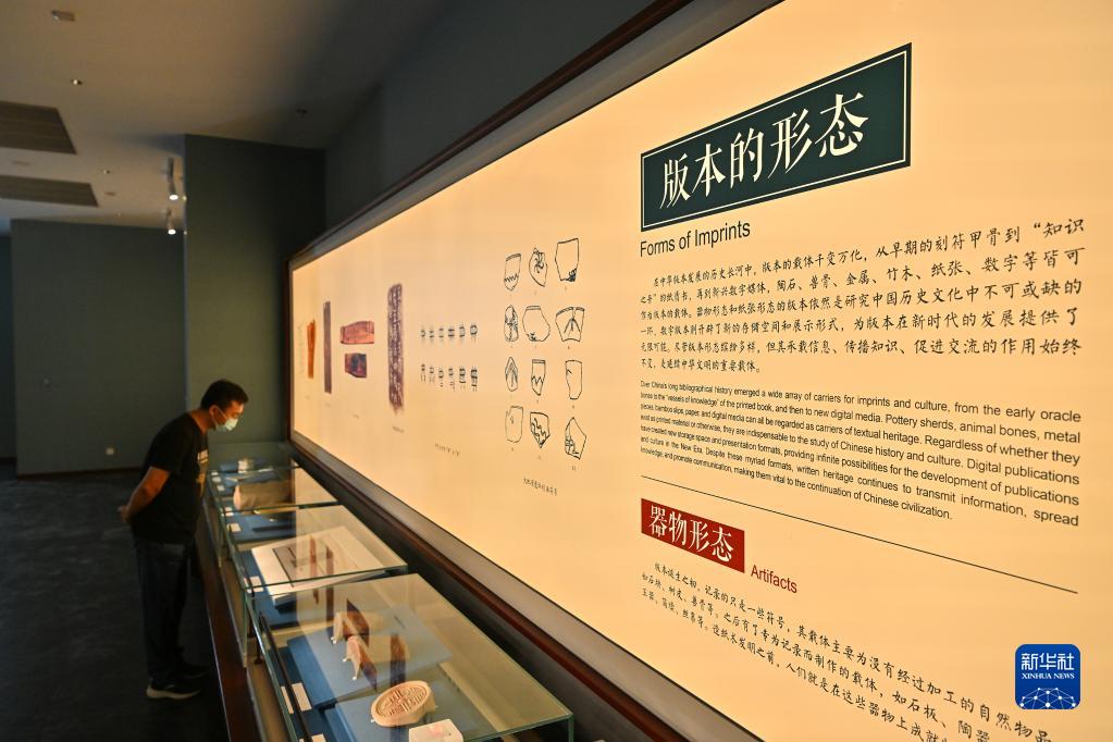 7月30日,一名觀眾在中國國家版本館中央總館的展廳內參觀。