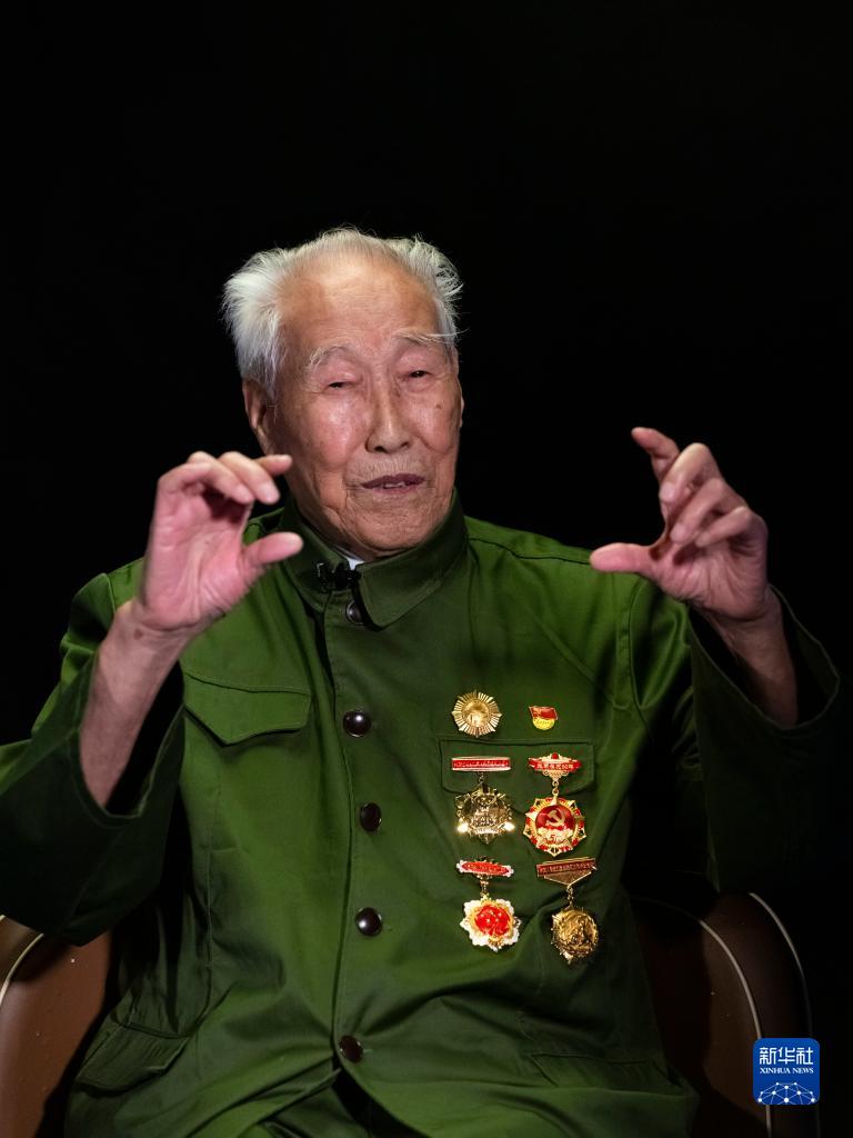 6月30日,在四川省德陽市,抗戰老戰士郝校忠講述抗日戰爭時期的經歷。