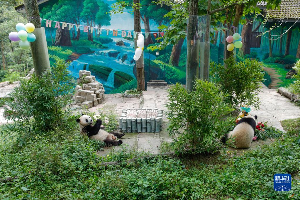 這是8月3日在中國大熊貓保護研究中心雅安基地拍攝的大熊貓“雅雅”(左)和“安安”。