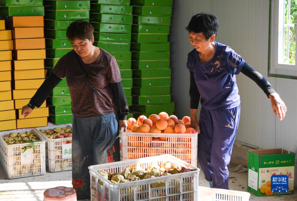 8月3日,重慶市萬州區恒合土家族鄉鴻鳳村村民在抬運桃子。
