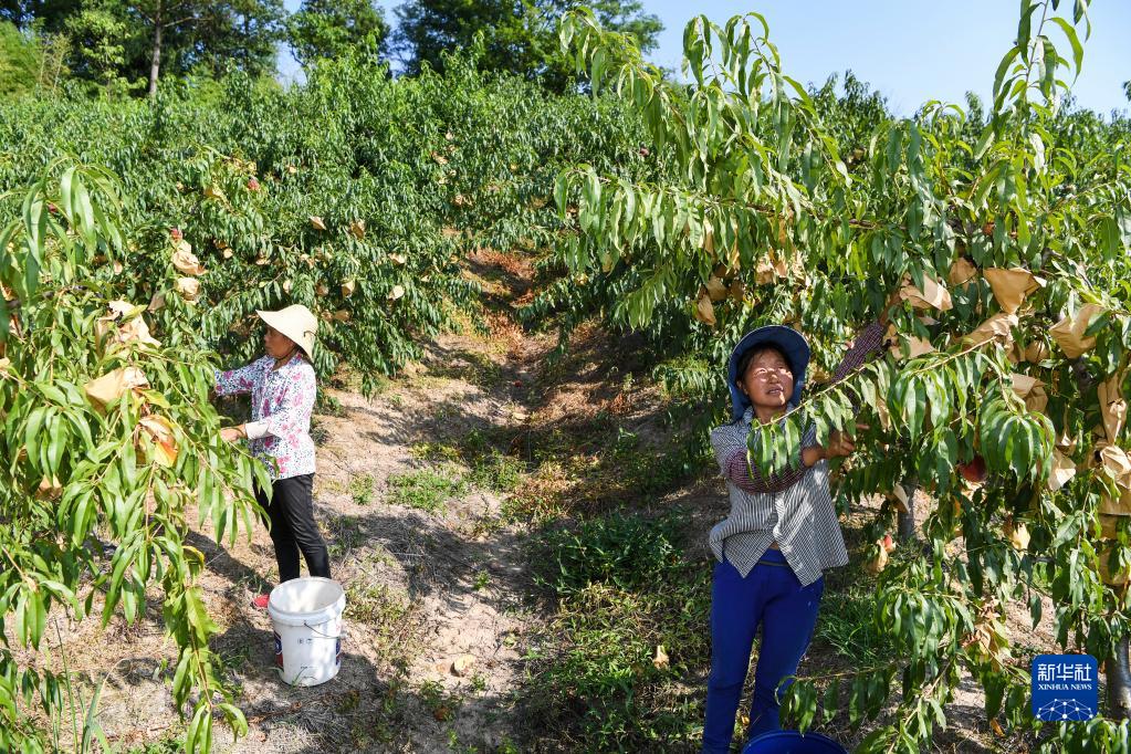 8月3日,重慶市萬州區恒合土家族鄉鴻鳳村村民在采摘桃子。