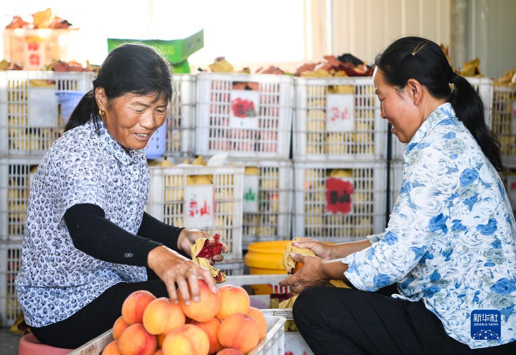 8月3日,重慶市萬州區恒合土家族鄉鴻鳳村村民在分選桃子。