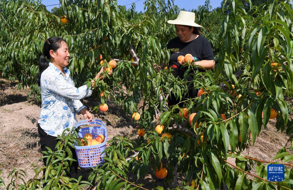 8月3日,重慶市萬州區恒合土家族鄉鴻鳳村村民在采摘桃子。