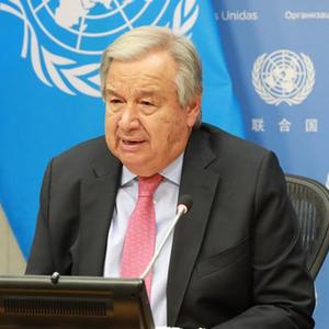 8月3日,在位于紐約的聯合國總部,聯合國秘書長古特雷斯回答記者提問。