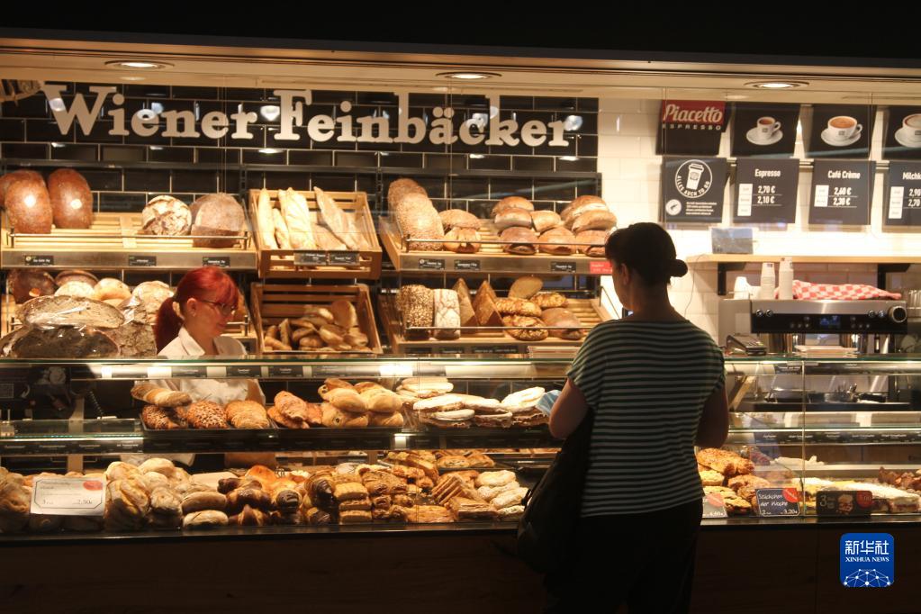 8月2日,顧客在德國法蘭克福的一家面包店購買食品。