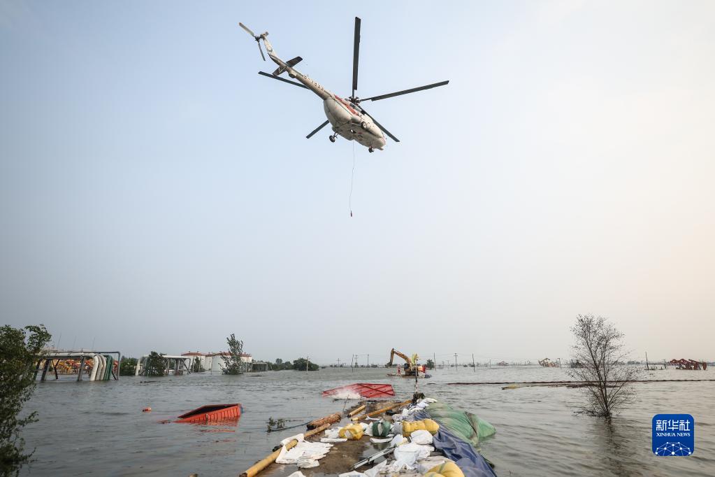 8月1日,遼寧省盤錦市繞陽河左岸曙四聯段一處堤壩發生潰口。8月3日,潰口長度發展至50余米。經過各方搶險力量連日來加緊施工,搶險工作穩步推進。4日,搶險人員開始對潰口進行直升機吊裝投放六角沉箱作業。