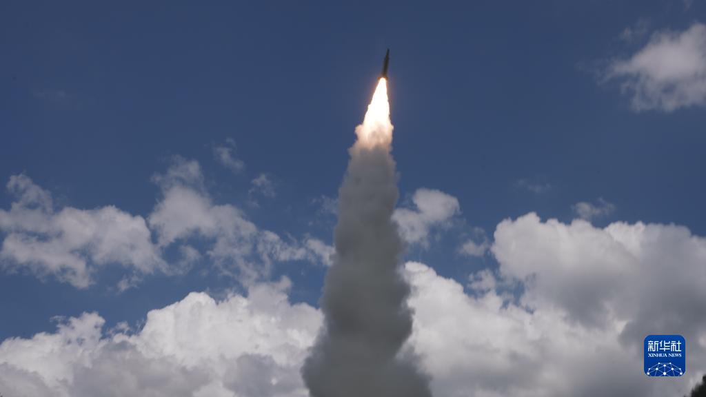 8月4日,東部戰區火箭軍對臺島東部外海預定海域實施火力突擊。這是導彈升空。
