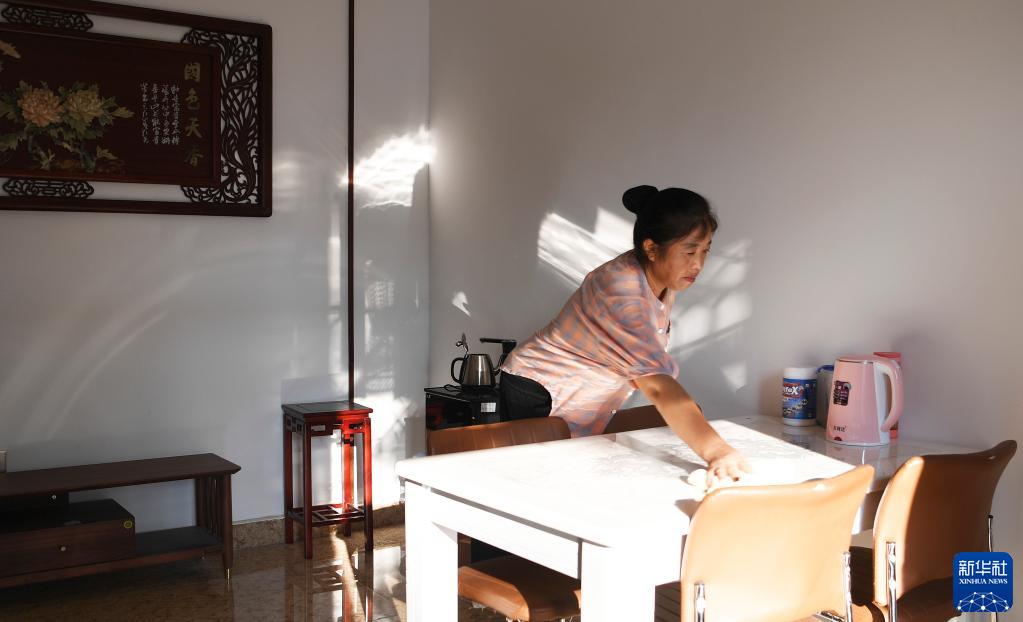8月4日,河南省南陽市淅川縣九重鎮鄒莊村村民在自家民宿內打掃。