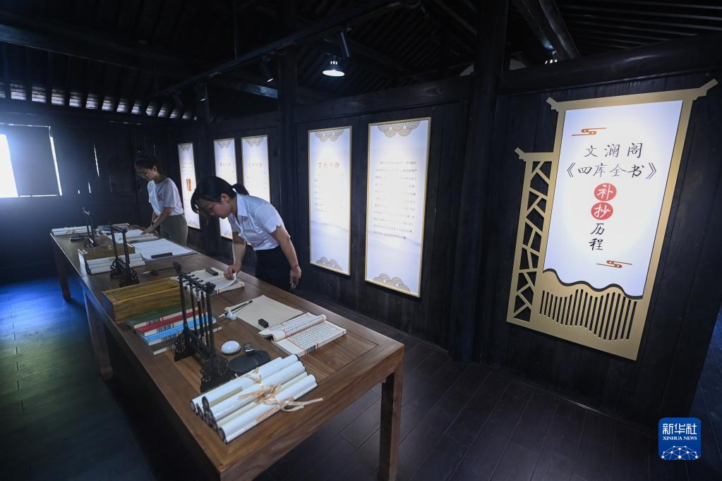 8月5日,參觀者在“文瀾閣《四庫全書》抗戰西遷首站研學中心”內參觀。