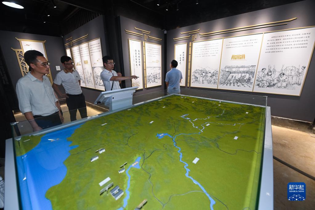 8月5日,參觀者在“文瀾閣《四庫全書》抗戰西遷首站研學中心”觀看西遷線路沙盤。