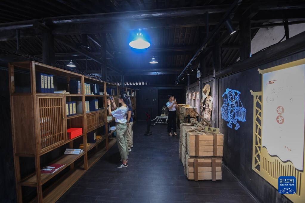 8月5日,參觀者在“文瀾閣《四庫全書》抗戰西遷首站研學中心”內參觀。