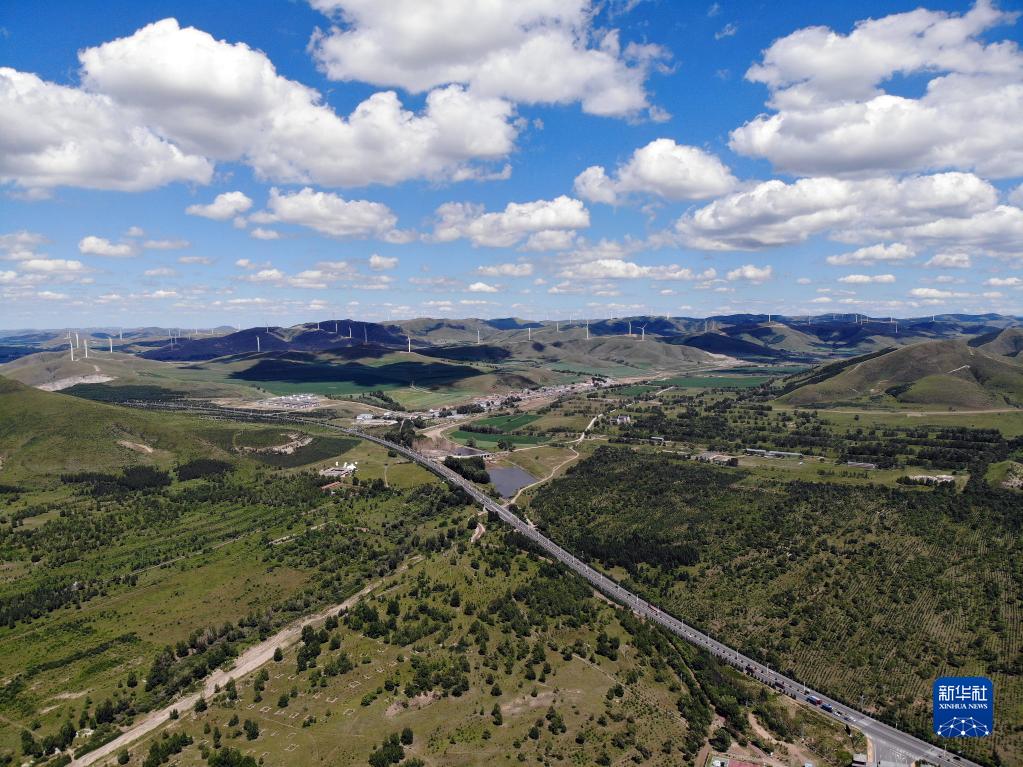 這是8月5日拍攝的豐寧滿族自治縣壩上草原景色(無人機照片)。