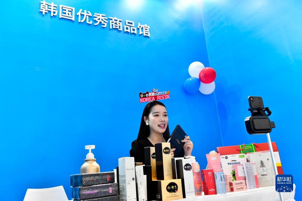 8月5日,在山東省威海市,主播在第二屆韓國(山東)進口商品博覽會上直播帶貨。
