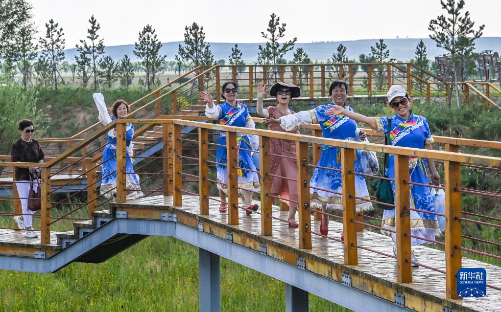 暑期以來,陜西省神木市紅堿淖景區與相連的爾林兔大草原,利用各自的獨特資源,聯合開展豐富多彩的文體活動,旅游接待人數持續增長。
