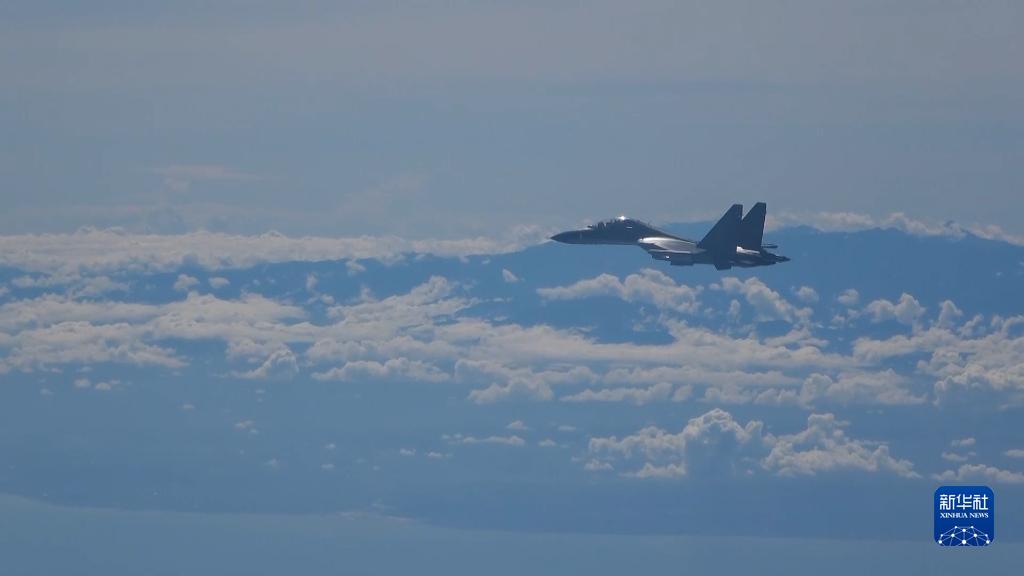 8月5日,中國人民解放軍東部戰區空軍赴臺島周邊實施演訓任務。這是戰機在執行抵近懾壓任務(視頻截圖)。新華社發