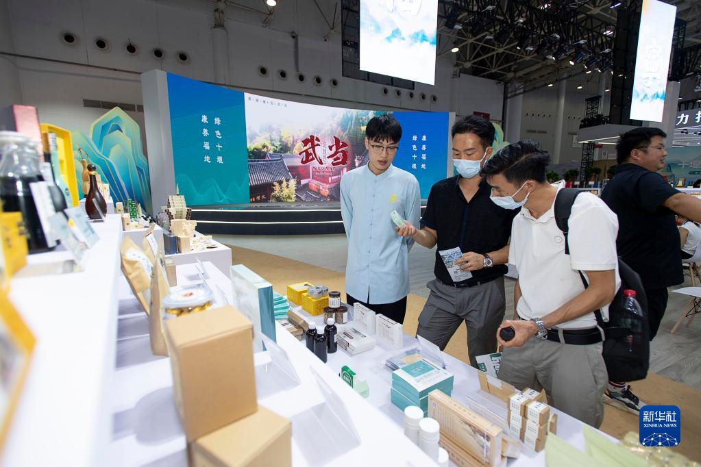 8月5日,在2022年世界大健康博覽會上,觀眾在湖北十堰展廳參觀。