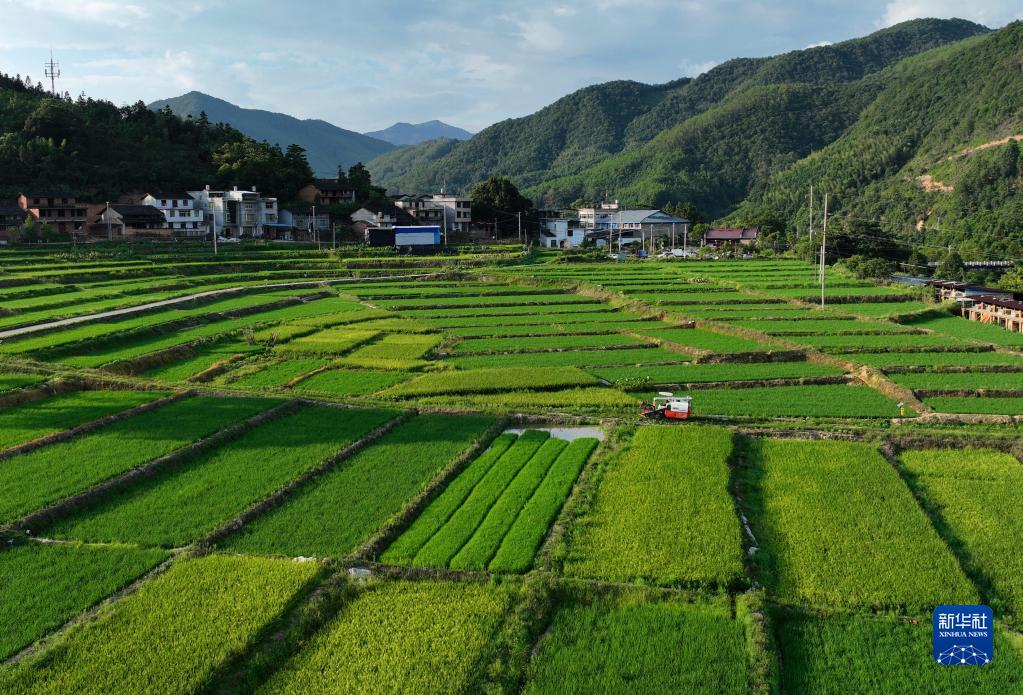新華全媒+|大地“調色盤” 稻田夏收忙