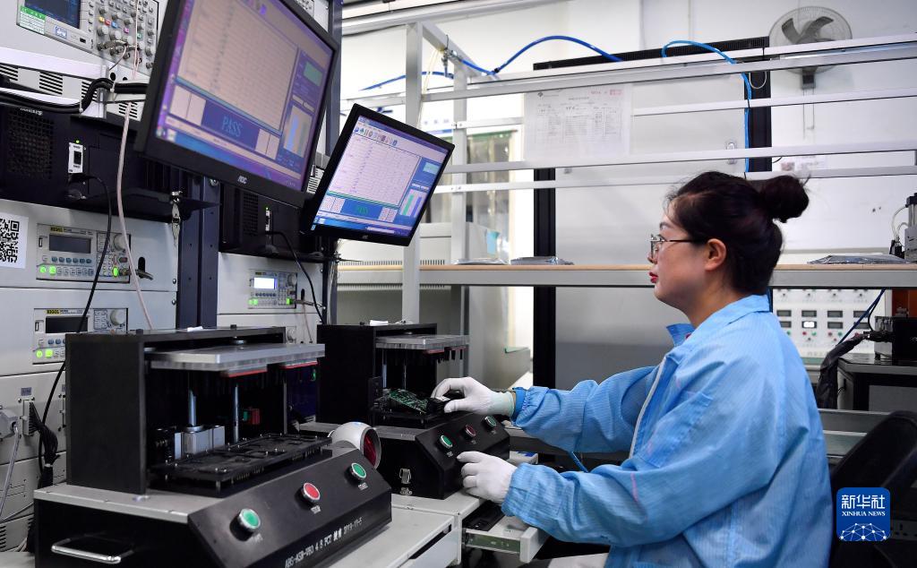 西安正昌電子股份有限公司的工作人員進行剎車防抱死系統控制器測試(8月4日攝)。