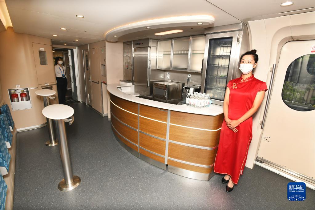 這是8月5日在位于山東省青島市的中車四方股份公司拍攝的雅萬高鐵高速動車組餐車內部。