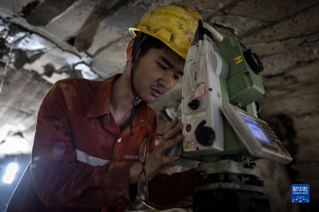 8月4日,在高黎貢山隧道掌子面施工處,測繪員為防止誤差取下眼鏡進行測繪。
