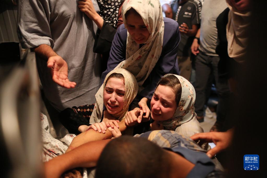 8月5日,空襲遇難者親屬在加沙地帶南部城鎮汗尤尼斯的一所醫院哭泣。
