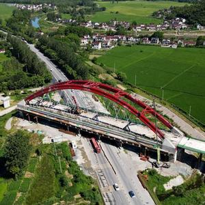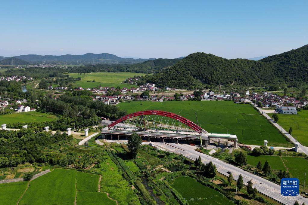 當日,由中鐵十一局施工的池(州)黃(山)鐵路墩上特大橋128米系桿拱主體工程完成施工,為后續工程施工提供保障。池黃鐵路全長約125公里,設計時速350公里,是武(漢)杭(州)快速鐵路通道的重要組成部分。