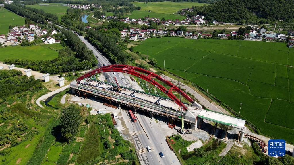 當日,由中鐵十一局施工的池(州)黃(山)鐵路墩上特大橋128米系桿拱主體工程完成施工,為后續工程施工提供保障。池黃鐵路全長約125公里,設計時速350公里,是武(漢)杭(州)快速鐵路通道的重要組成部分。