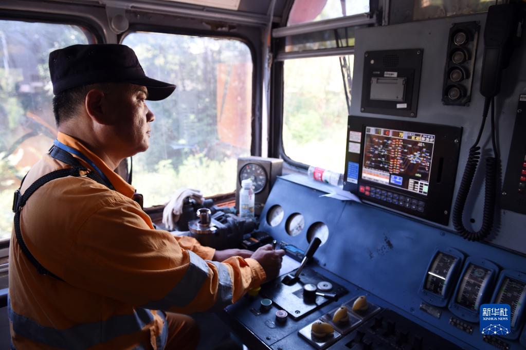 8月5日,合肥火車站運轉車間調車長李健擔任調車機車副司機,瞭望前方進路。