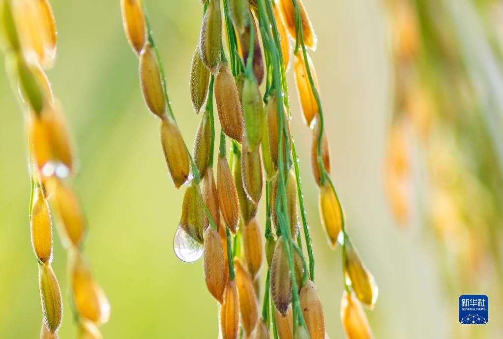 7月24日,在廣西南寧市邕寧區蒲廟鎮,稻穗上掛著露珠。