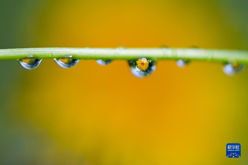 8月1日,在山東省青州市云門山森林公園,植株上掛著晨露。