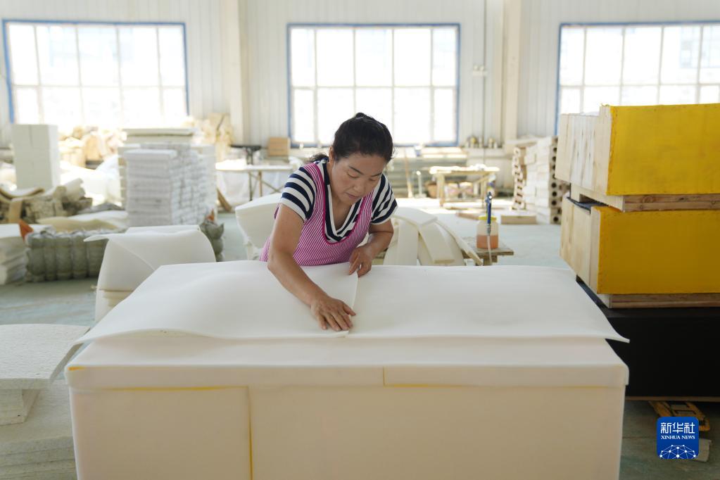 8月4日,在穆棱經濟開發區,黑龍江小虎貝貝家具有限公司工人在生產寵物家具。