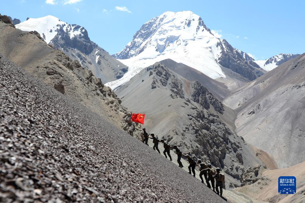 8月1日,新疆軍區庫爾干邊防連巡邏分隊官兵攀爬“刀背山”。八一建軍節,解放軍和武警部隊官兵在各自戰位上,以軍人特有的方式慶祝中國人民解放軍建軍95周年。