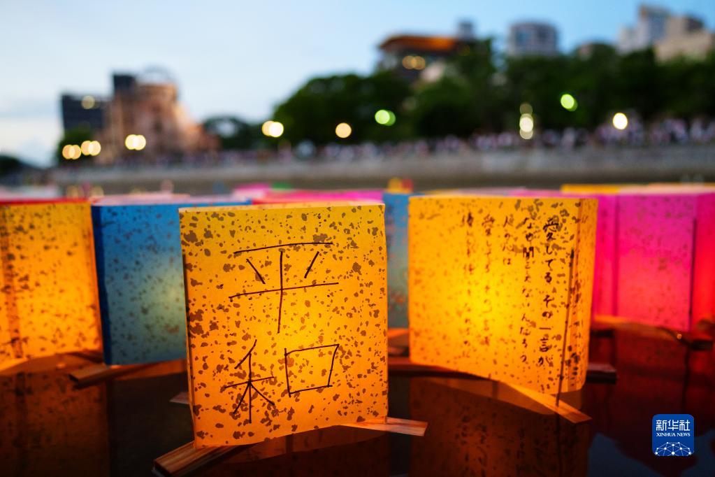 8月6日,在日本廣島和平紀念公園附近的元安川,民眾放河燈祈愿和平。