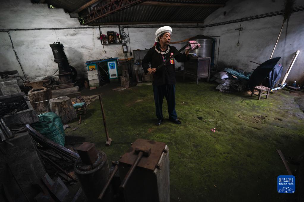 62歲的阿昌族男子項老賽是戶撒鄉本地人,14歲師從父親制刀,至今已有四十余年,現在是國家級非物質文化遺產——阿昌族戶撒刀鍛制技藝國家級代表性傳承人。