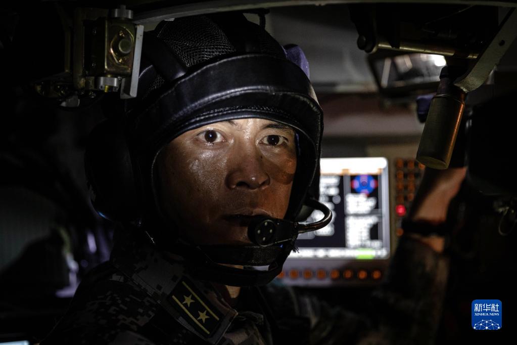 第73集團軍某旅合成營營長陳松在兩棲裝甲車內進行訓練(2022年6月18日攝)。