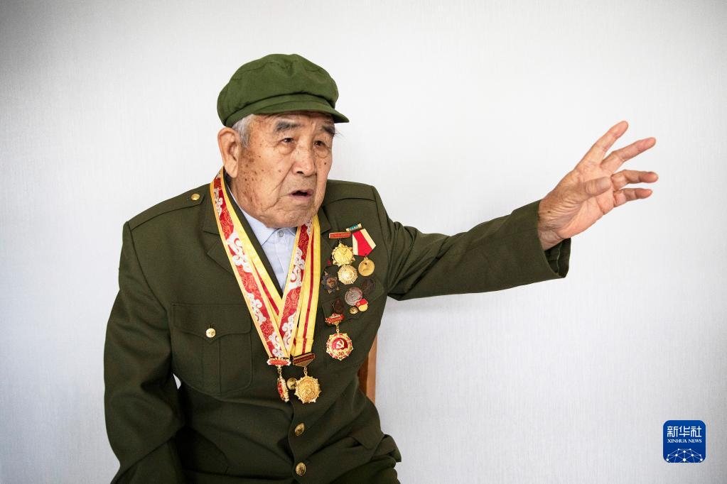 6月29日,在山東省東營市,抗戰老戰士李正家講述抗戰經歷。