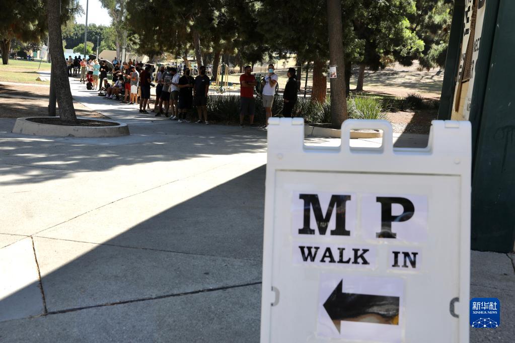 8月6日,人們在美國洛杉磯一處猴痘疫苗接種點排隊。
