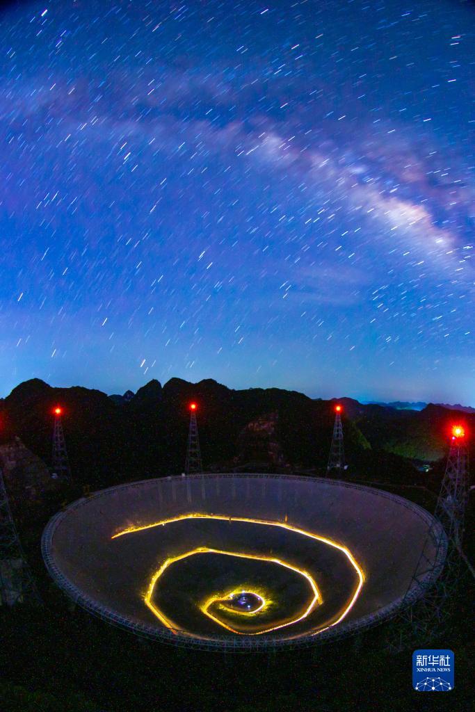 “中國天眼”夜景(2022年7月24日維護保養期間拍攝)。